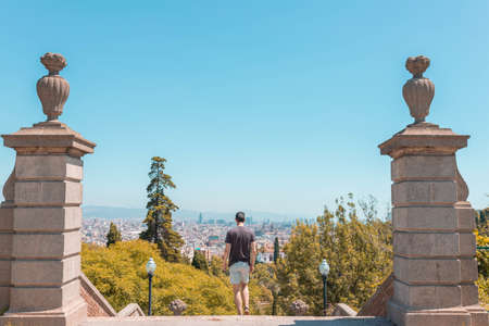 on Barcelona city from Columbus column. Barcelona, Catalonia, Spain.