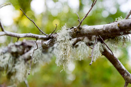 Moss growing on a tree branches in the forest