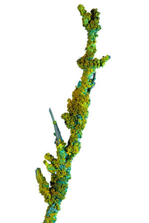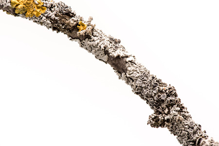 Lichen on a tree branch isolated on white background.