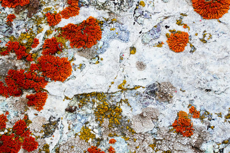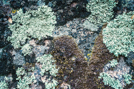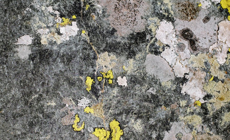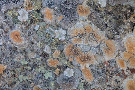 Natural stone surface with multi colored lichen stains. High quality photo