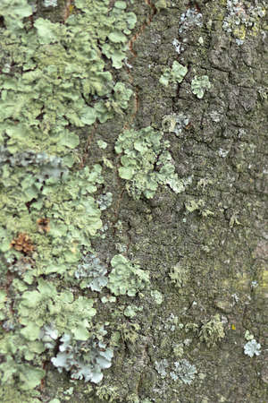 Macrophotography. The bark of tree overgrown with moss and lichen.