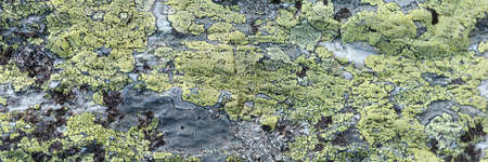 Green lichen on the rock. Natural panoramic background