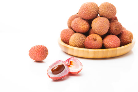 Lots of ripe fresh fruit lychee, which is called Chinese plum