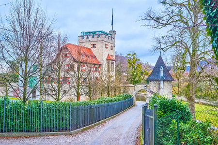 Honau GERMANY- April 7, 2024. View of the buildings in the courtyard of Liechtenstein