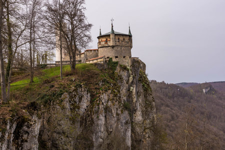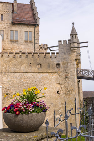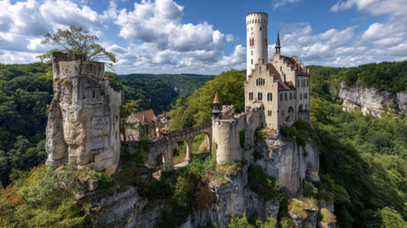 Ancient Lichtenstein Castle perched on a rock in Germany.