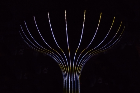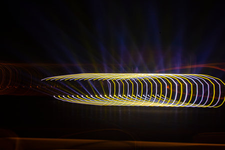 Long exposure colorful abstract line painting background isolated on black. curvy lines from led strip lighting on black background
