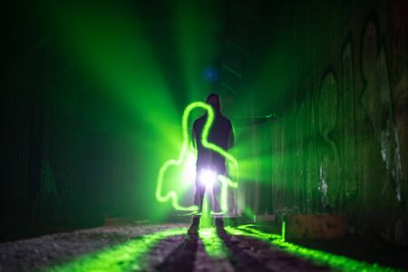 Laser in abandoned building mystery person magic spiritual spirit horoscope magic dark abandoned bunker people