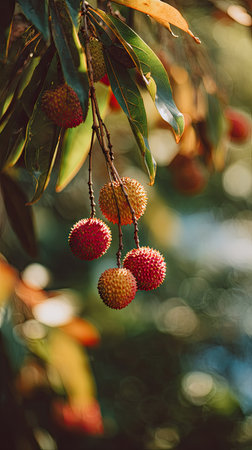 Summer season fresh juicy lychee fruit ready to pluck from tree organic fresh seasonal fruit