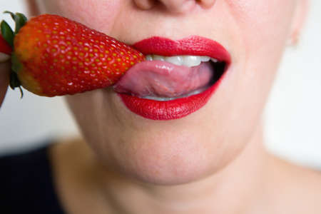 Sexy lips young woman and strawberry