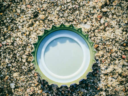 Background or texture of solid nature rock and bottle cap. Closeup.