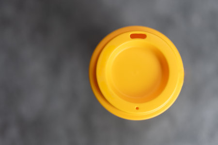 A vibrant yellow plastic cap sits on a dark background, offering a striking contrast. This image is perfect for various creative and design projects.