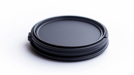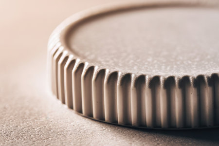 A flat round object with ridges rests on a soft, light surface. The surface shows light textures that create a subtle contrast with the object above it.