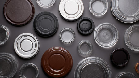 Closeup medium shot showcasing fitted metal domed lids precisely aligned on containers highlighting secure sealing and durability.