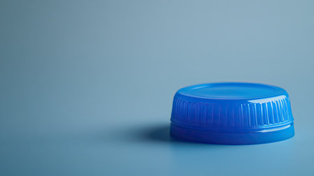 A vibrant blue plastic bottle cap rests on a soft blue background, showcasing a minimalist aesthetic. Perfect for themes around recycling, nature, and design.