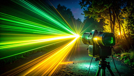 Captivating lens of a camera with vibrant bokeh effects in the background