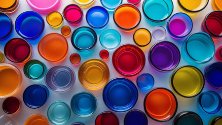 top view background of colored drink glasses
