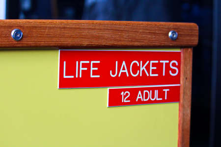 A life jackets 12 adult location indicator sign.