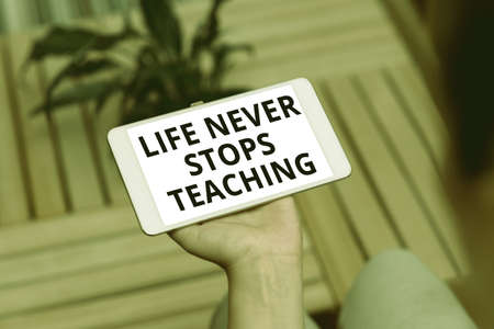 Text caption presenting Life Never Stops Teaching. Business approach keep learning techniques Look for ways to improve Voice And Video Calling Capabilities Connecting People Together