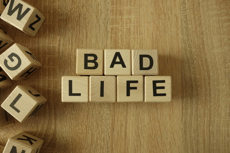 Bad life text from wooden blocks on desk