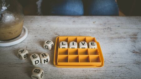 Life word built with letter cubes