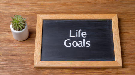 Wooden blocks with the words My golas 2020 on a chalkboard with space for text or images