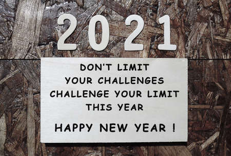 New year quote for 2021 on wooden board and background. Happy New Year 2021 concept