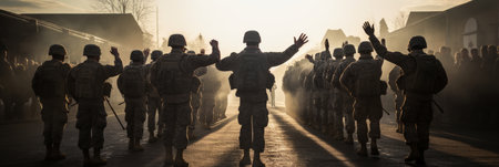 Military shake hands, peace negotiations, end of war AI generated image