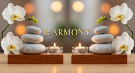 Harmony - a gentle text of relaxation on cubs with a floral background