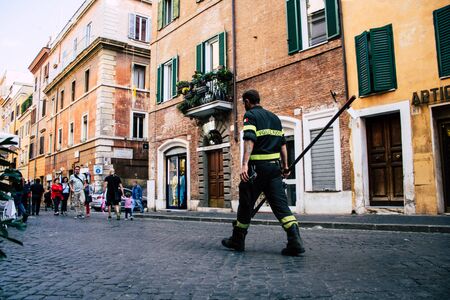Rome Italy October 18, 2019 View of Italian fireman walking in the streets of Rome in the morning