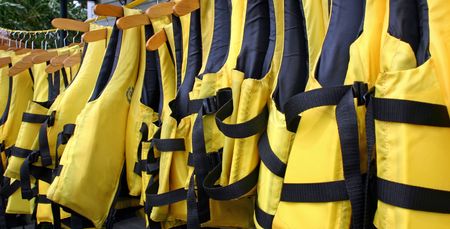 safety life jacket for rental at the beach during summer vacation at Pangkor Island located in Perak State, Malaysia
