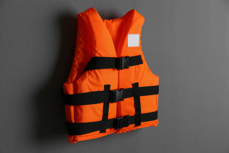 A bright orange life jacket is displayed on a solid background, emphasizing the importance of water safety. Perfect for promotional use in aquatic activities.