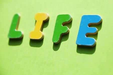 wooden cube whit the inscription Life, with on background. Safe life. Protection of life.
