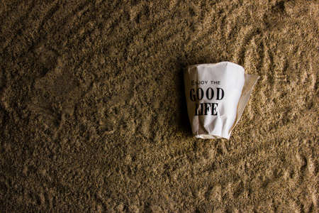 The best things in life are not things - handwriting on a napkin with a cup of espresso coffee
