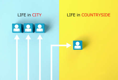 Concept of Best Place To Live on wooden cubes with magnifying glass, glass eye, books in Vintage background