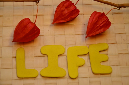 The word life was created from wooden cubes. close up