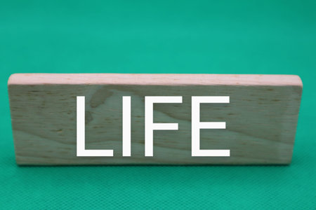 word life in wooden letters on green background