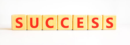 Successful success symbol. Concept word Success on beautiful wooden blocks. Beautiful white background. Business success or successful concept. Copy space.