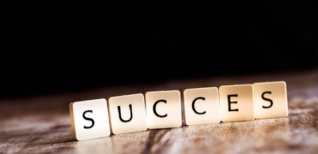 Success word written on wood block. Success text on wooden table for your design, concept.