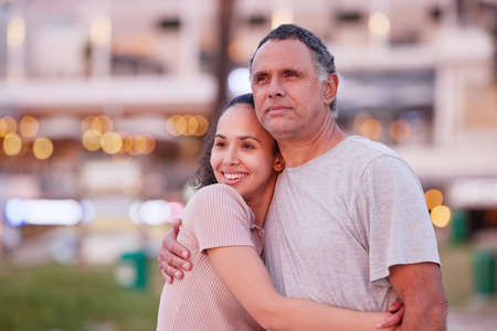 Embracing couple in the city. People in love. Romantic