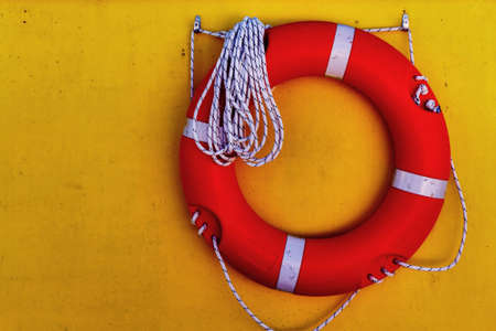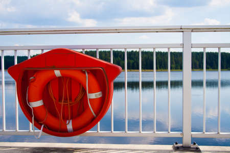 Circle rescue in the boat. Orange lifebuoy