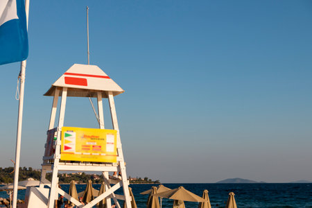 Lifeguard on Lagomandra beach to ensure safety on the beach. Bathing season in Greece.Summer vacation