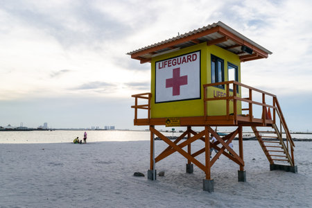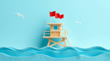 Coastal sentry observing the waters, keeping a vigilant eye on the beach, maintaining safety on the shore during the warmer months. Generative AI
