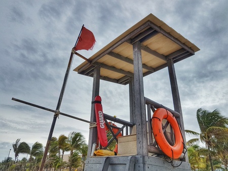 Lifeguard tower on the beach in the town of Cancun, Mexico