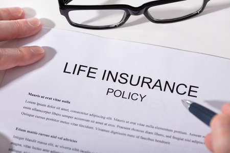 Close-up Of Human Hand Holding Pen Over Life Insurance Policy Form