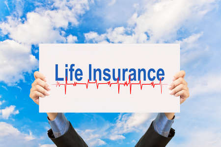 Man hold Life insurance claim form. Office desk background with alam clock. Protection and secure life concept photo and banner design