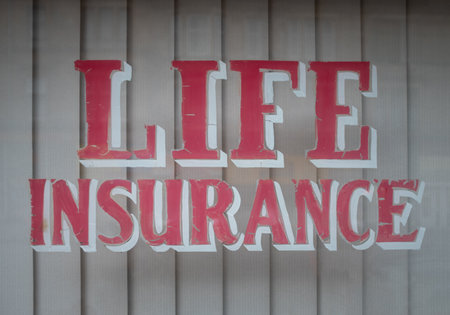 Life insurance concept with money, calculator and pen lying on a contract in English