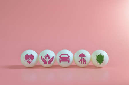 Wooden blocks with icons of various types of insurance. Life insurance concept.