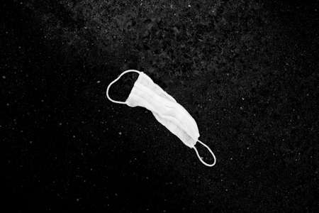Used medical mask laying on ground. Background for concepts