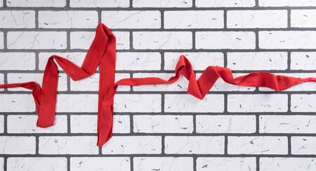 on the background of a white brick wall, heart rate, drawn with a red bandage for Boxing