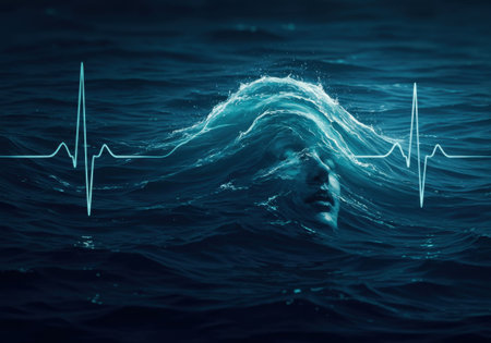 A digital representation of heart rate is displayed with a glowing pulse line fluctuating in a rhythmic pattern against a dark background, conveying a sense of life and vitality.